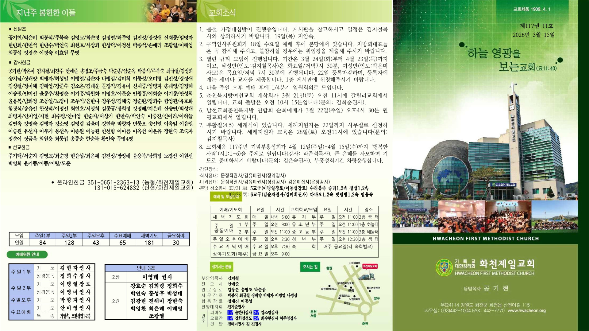 2026년 3월 15일 주일 교회주보