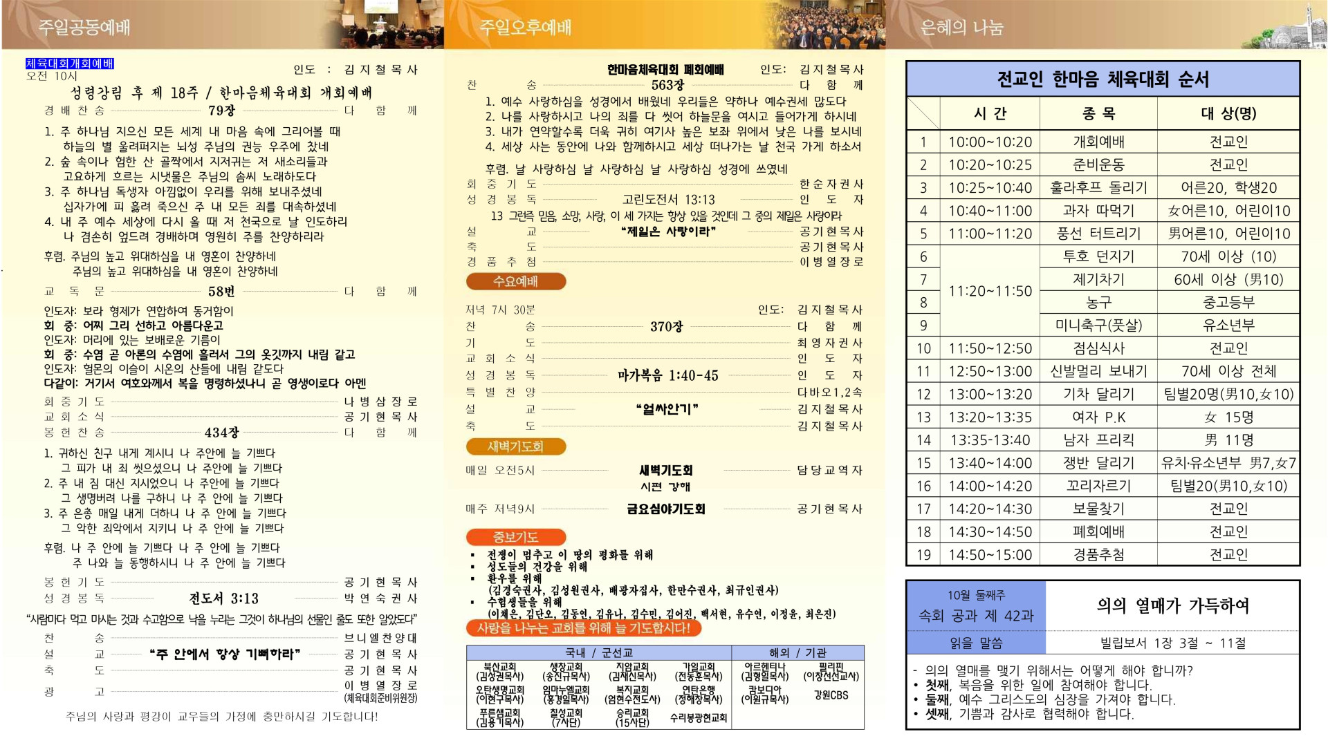 2025년 10월 12일 주일 교회주보