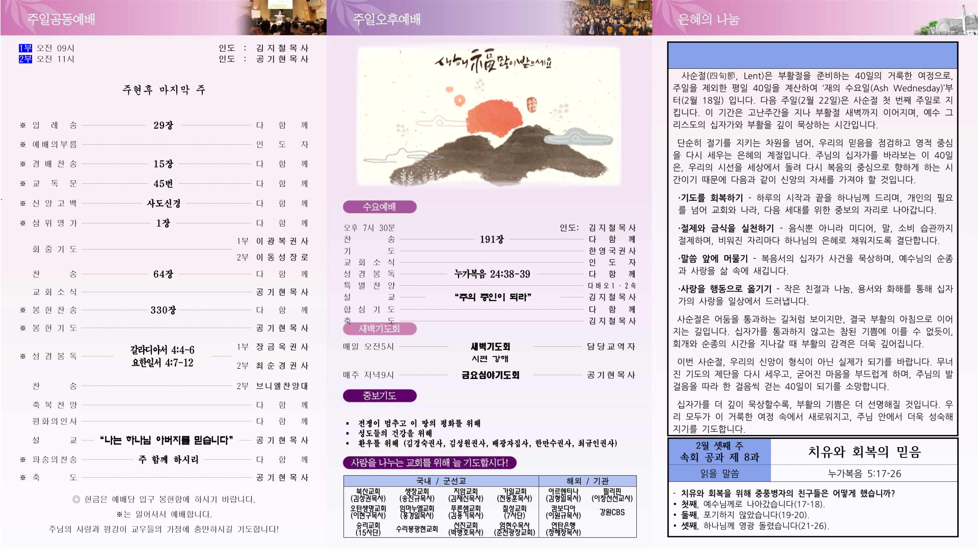 2026년 2월 15일 주일 교회주보