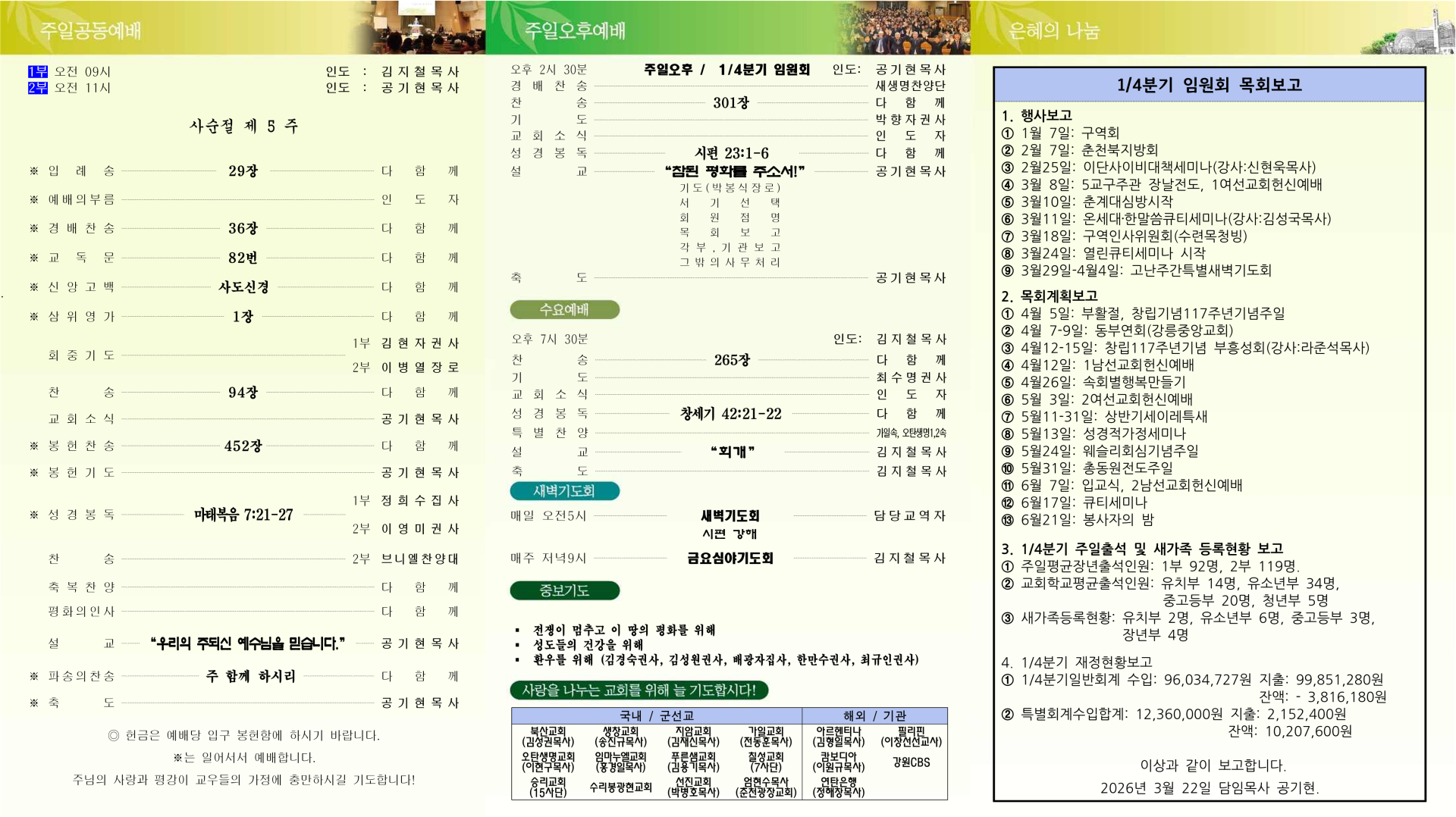 2026년 3월 22일 주일 교회주보